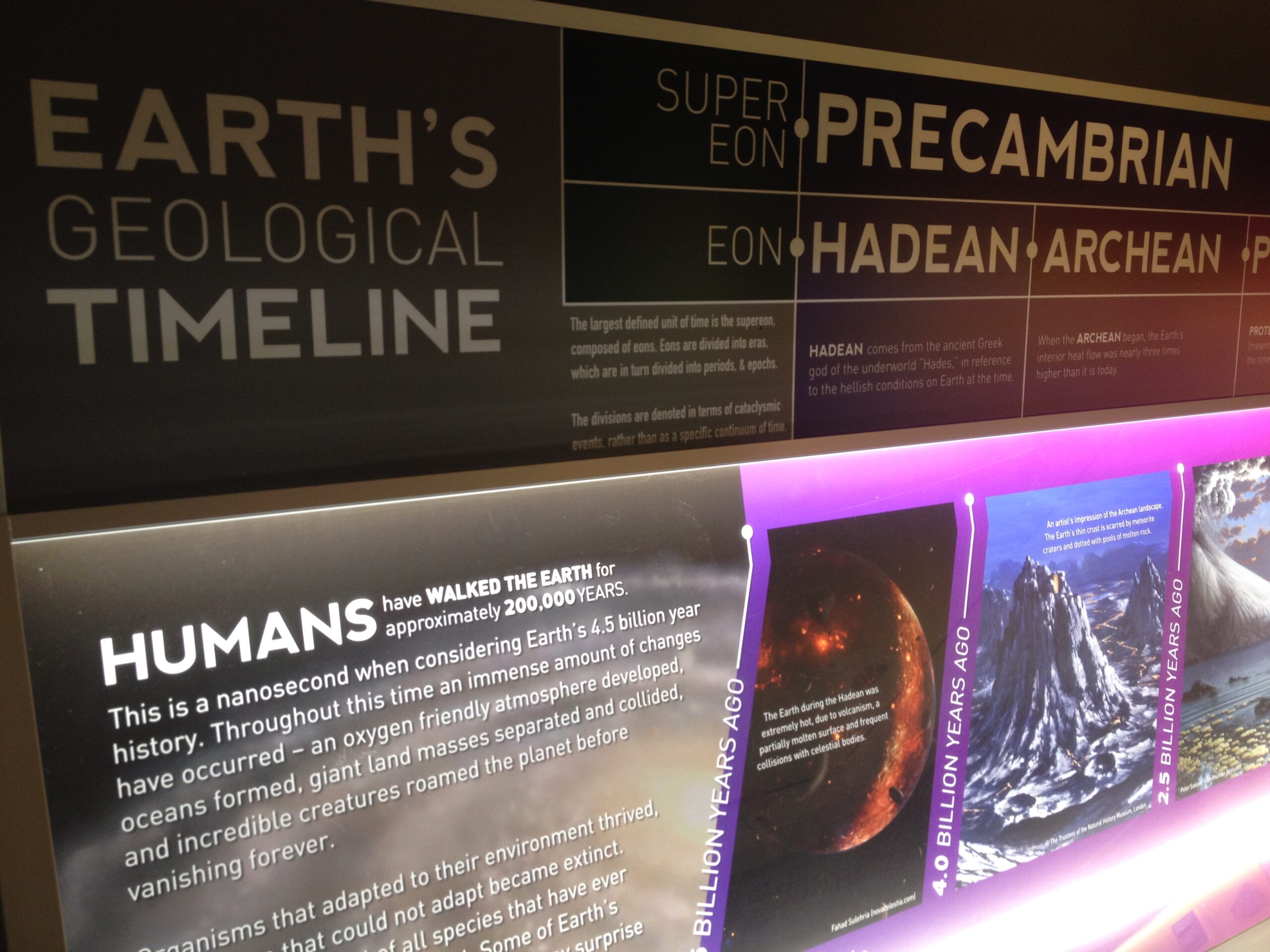 Humans have walked the earth for approximately 200,000 years. This is a nanosecond when considering Earth’s 4.5 billion year history. Throughout this time an immense amount of changes have occurred – an oxygen friendly atmosphere developed, oceans formed, giant land masses separated and collided, and incredible creatures roamed the planet before vanishing forever.