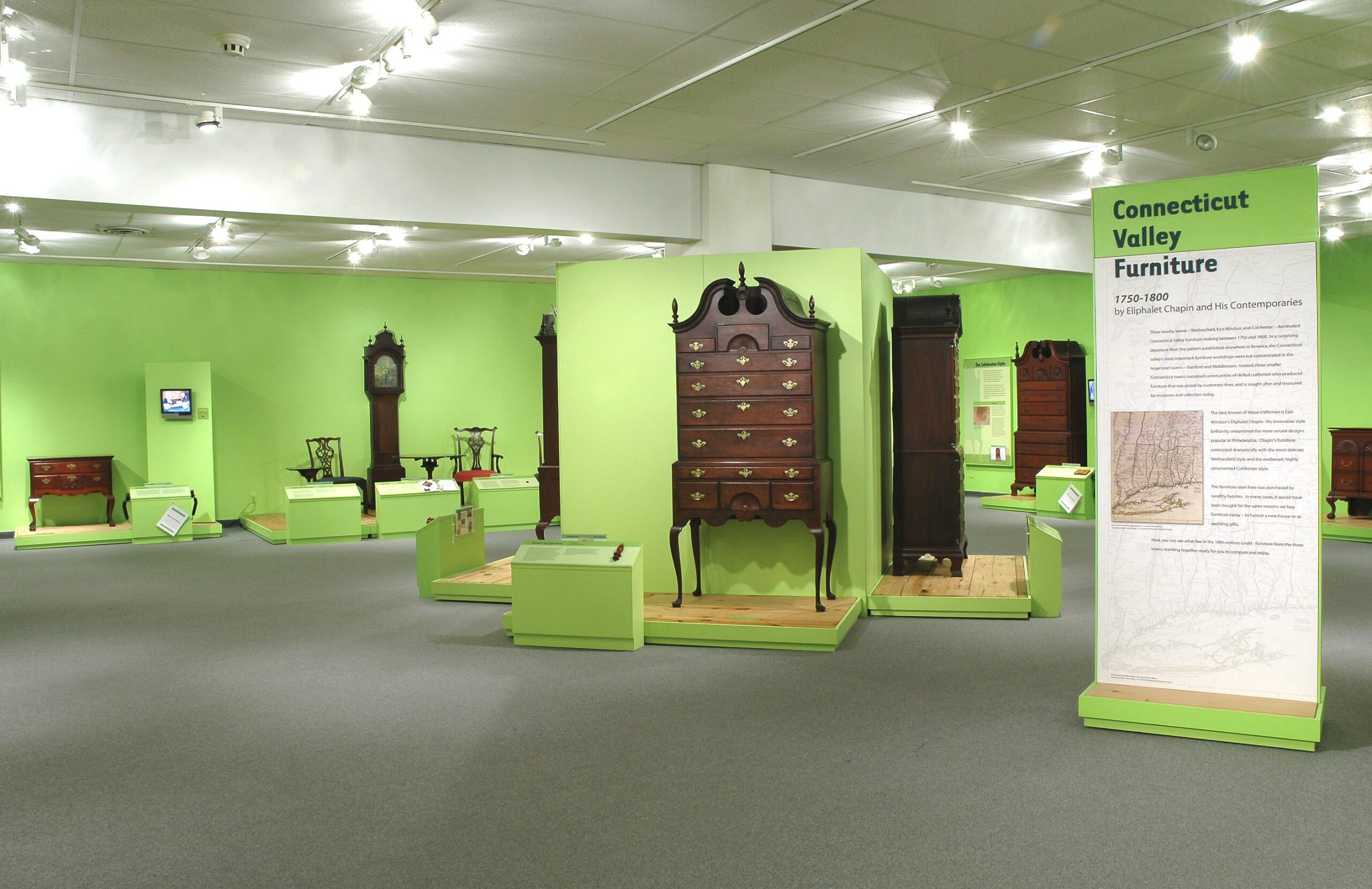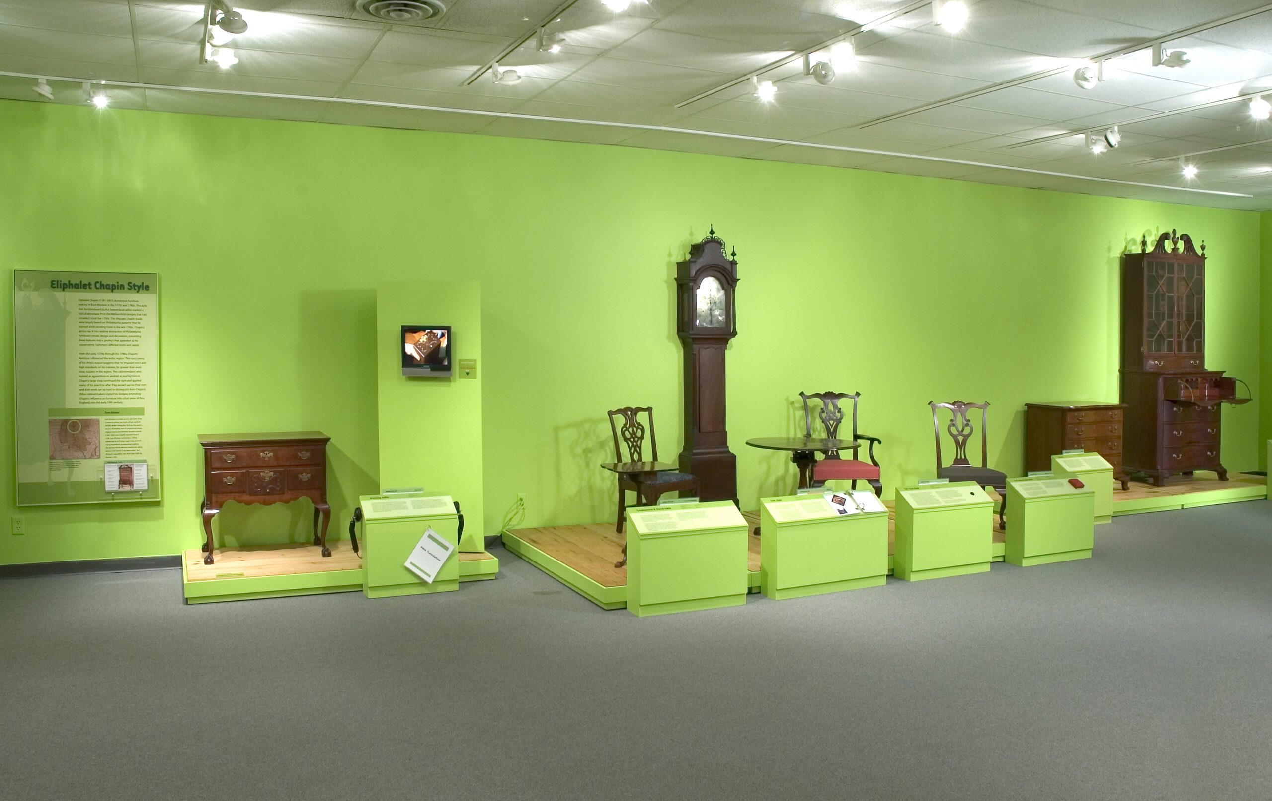 Showcasing work from “The Golden Age of Furniture” in the Connecticut Valley from 1750 – 1800, this exhibit featured masterworks—high chests, dressing tables, candle stands, secretaries and side chairs—made by Eliphalet Chapin and his contemporaries.