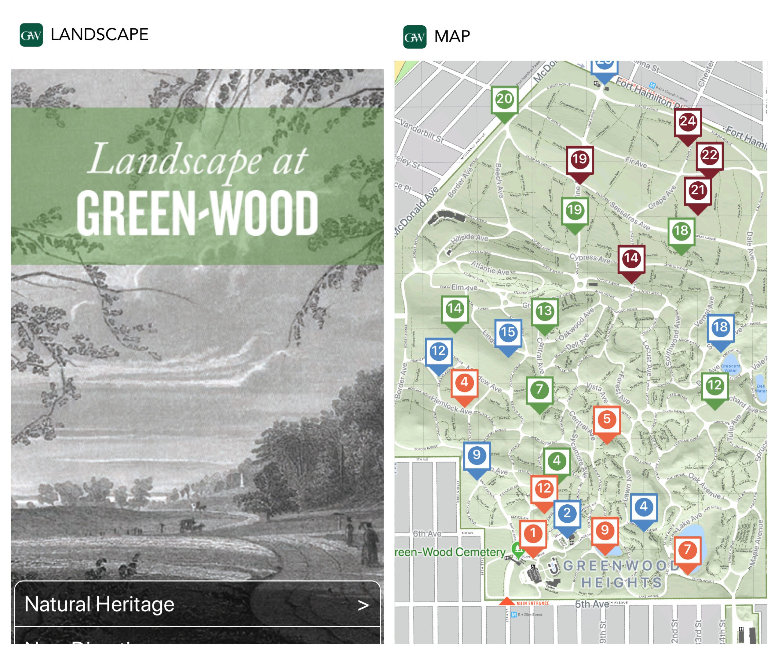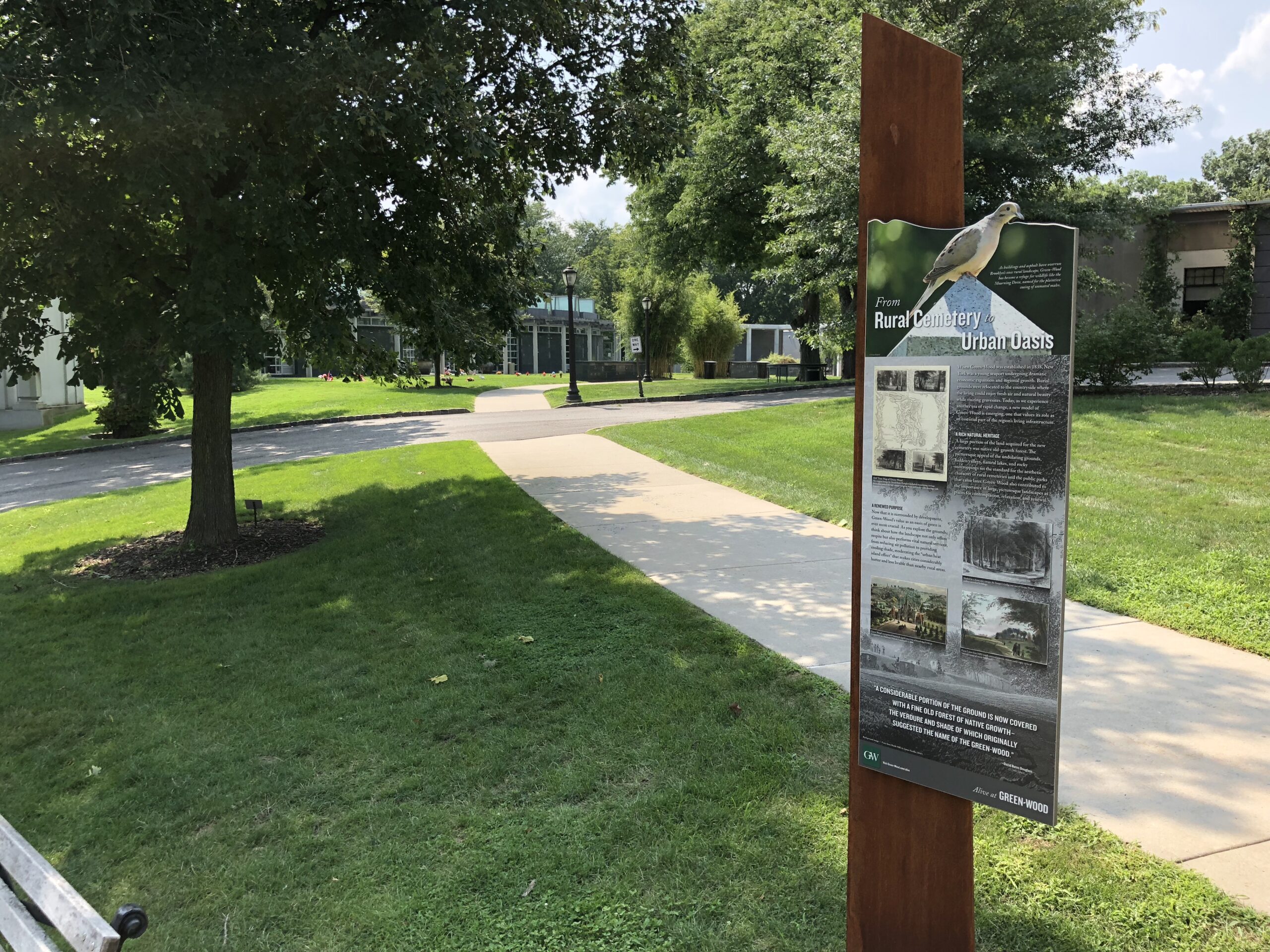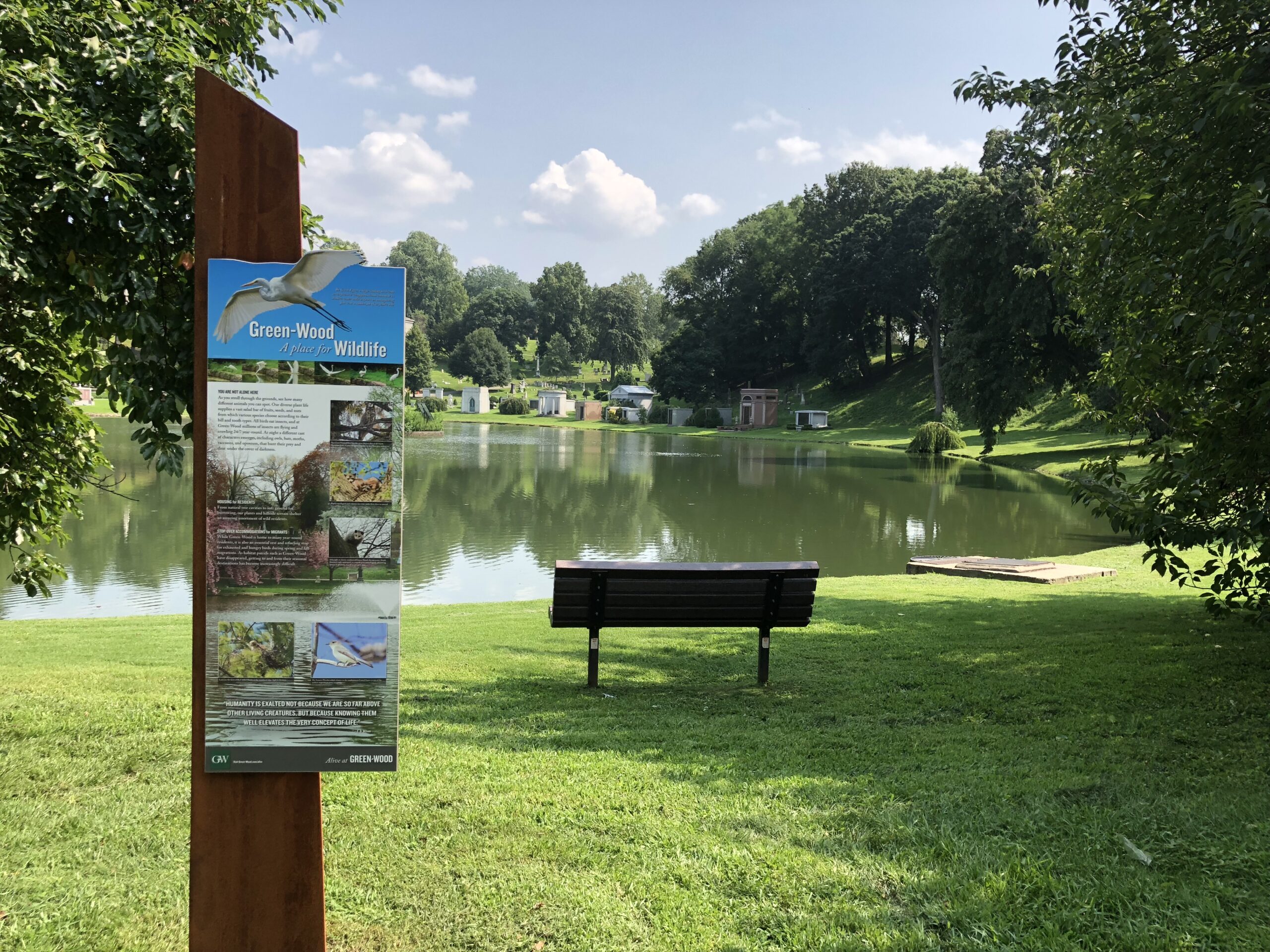 In 2016-2017, Whirlwind did an interpretive master plan for Greenwood and designed and produced a detailed visitor guide with key landscape, architectural and natural history locators. In addition, an APP, Alive at Greenwood, was developed to include a guide to key flora and fauna to the 428 acre cemetery.Outdoor markers featuring 12 different themes were strategically placed on-site.