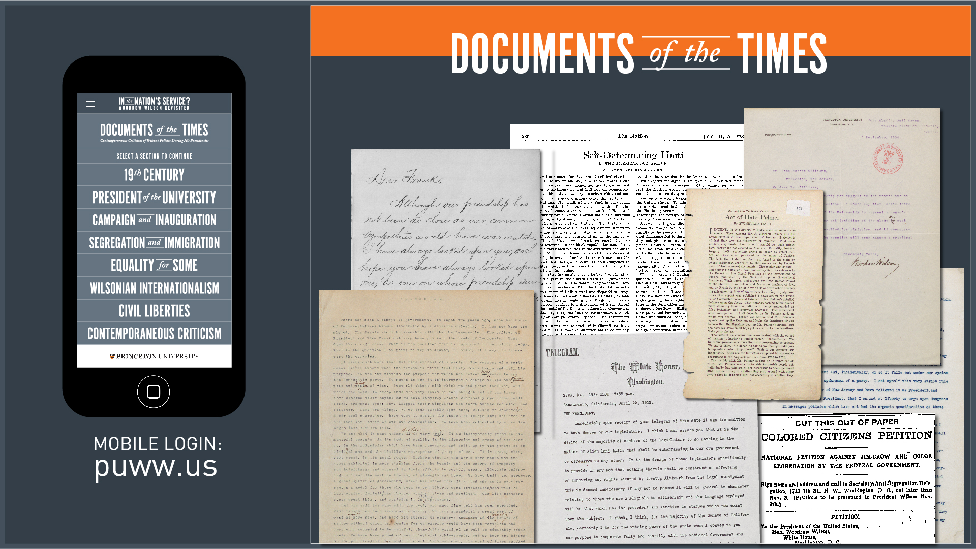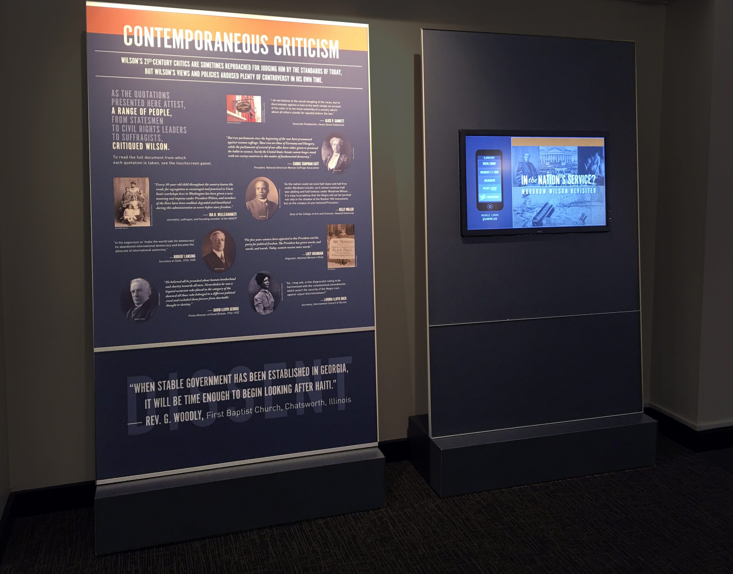 This exhibit, which draws on modern scholarship and newly digitized resources in the archives, was mounted as part of this ongoing dialogue. Wilson was a complex man and the exhibition informed and surprised many. It accompanied a series of conferences at Princeton that further examined the legacy of Woodrow Wilson from many perspectives, including contemporaneous criticism during his life time as well as modern scholarship.
