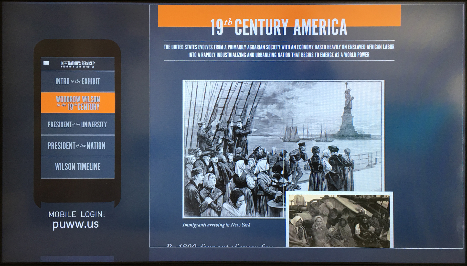 The exhibition follows key themes that were organized chronologically from his birth to his rise in power to president of the United States, allowing the visitor to see how Wilson, although seen as a product of his time, would later be held accountable for his actions.