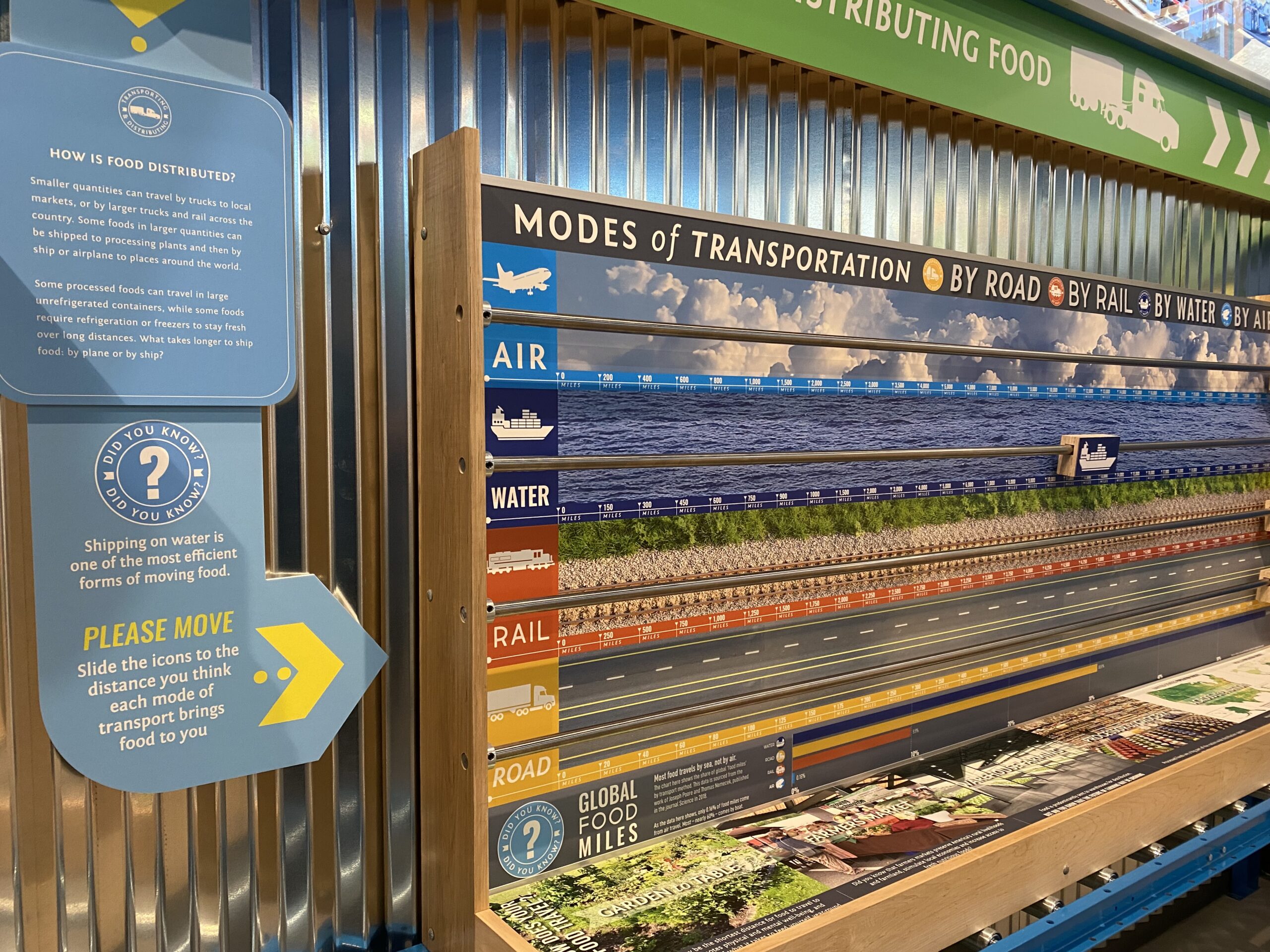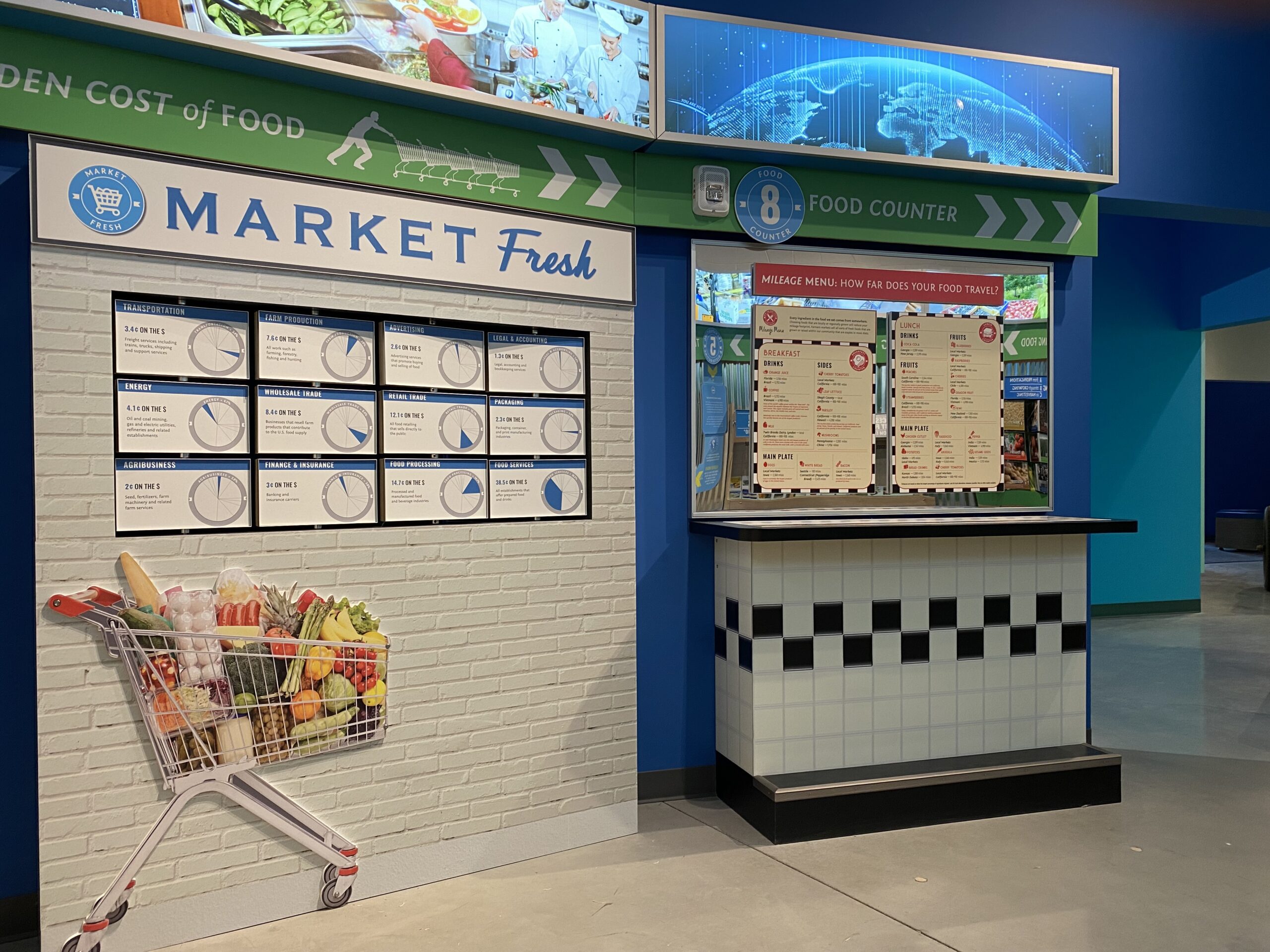 This interactive gallery is a highlight of a larger Agricultural Education Center, which takes you through the journey of food — from the essential elements of life to the food on your plate. With eight activity stations, the journey begins with an interactive puzzle of the elements that comprise life on earth to the cycles of growing and producing food, to the packaging and preserving, transporting, and marketing food. You end the journey at the Food Counter to learn about food miles— how far your food travels to get to your plate for breakfast and lunch. The focus in the Journey of Food, beyond understanding the process of growing and distribution, is to promote healthy, whole and local foods.
