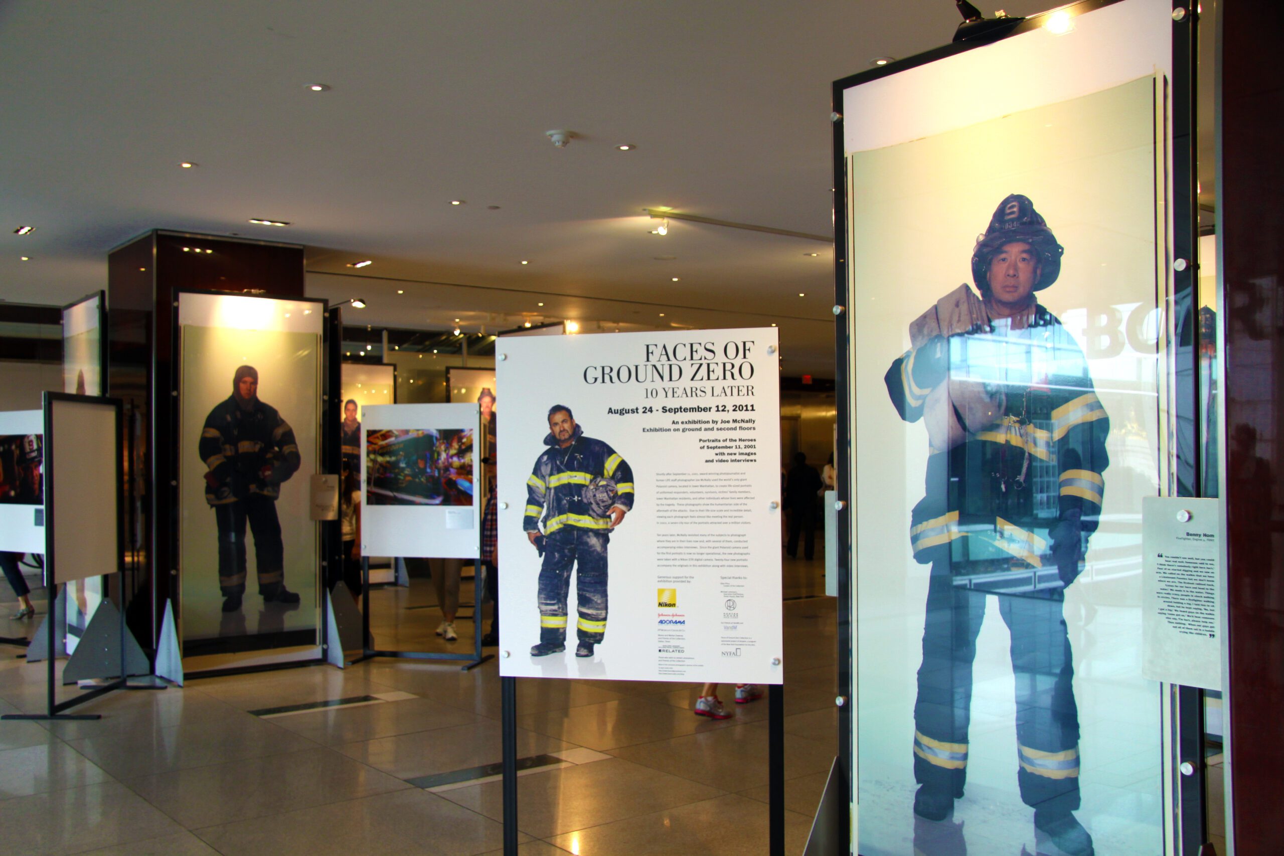 Following 9/11, Faces of Ground Zero not only presented a powerful exhibit, but it played a significant role in the healing process. Joe McNally’s tribute through life sized photographs paid tribute to the first responders following the tragedy of 9/11. On the 10th anniversary, Joe mounted an exhibition of these historic and heroic photographs, alongside portraits of the police, fireman and nurses 10 years later.