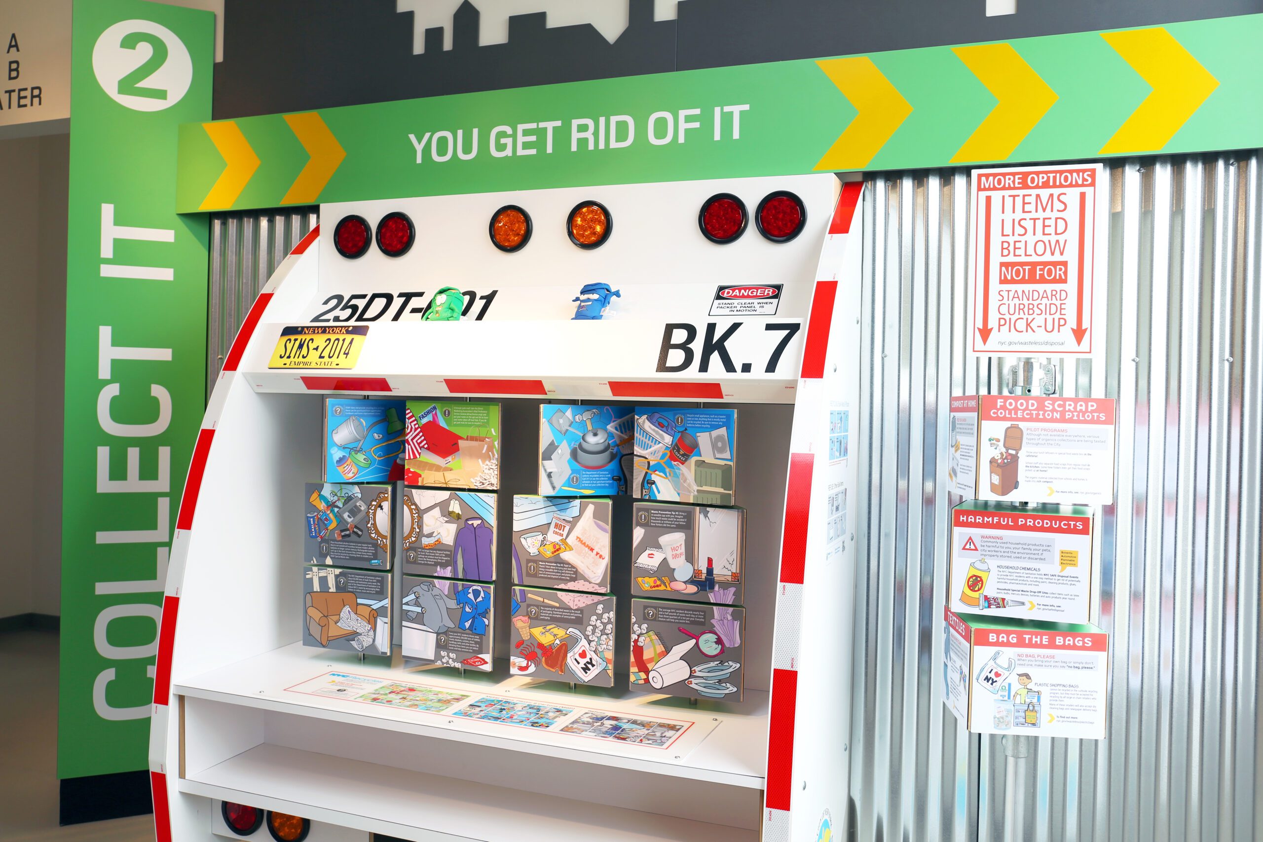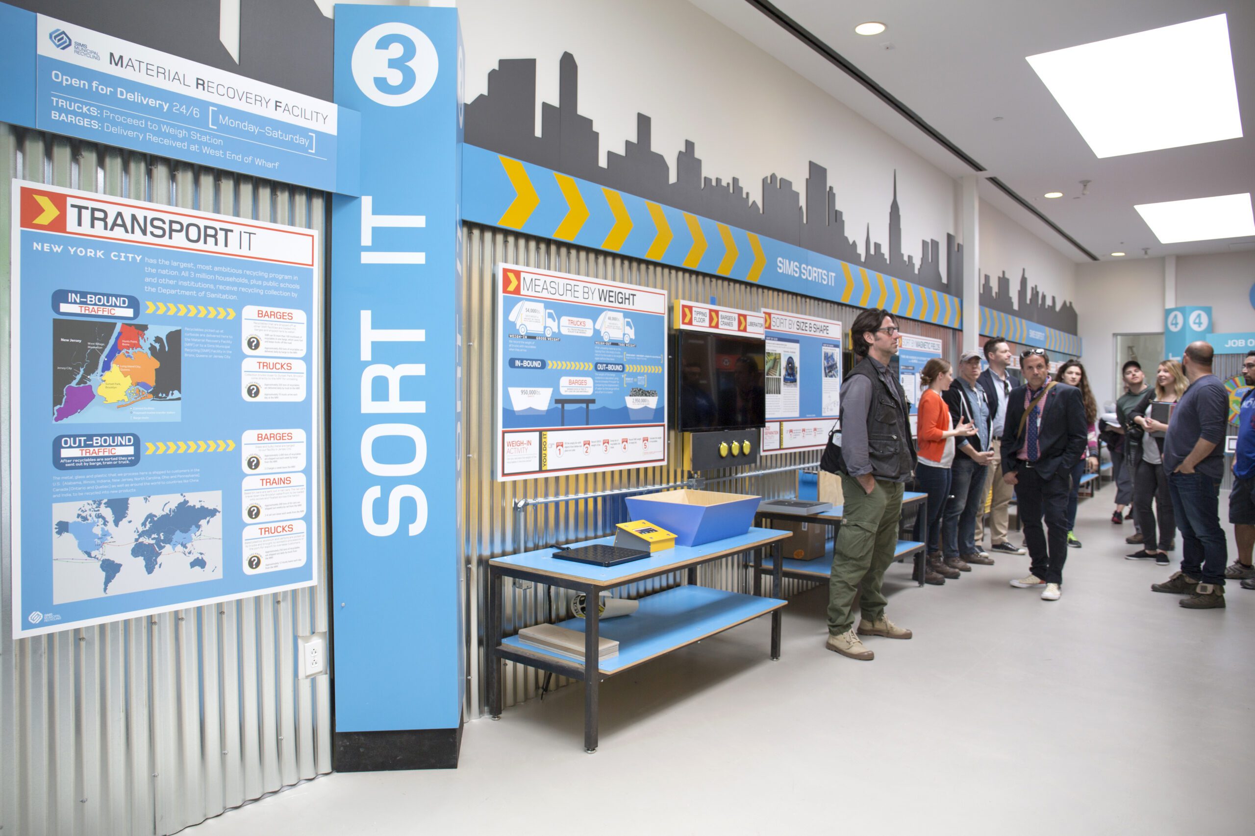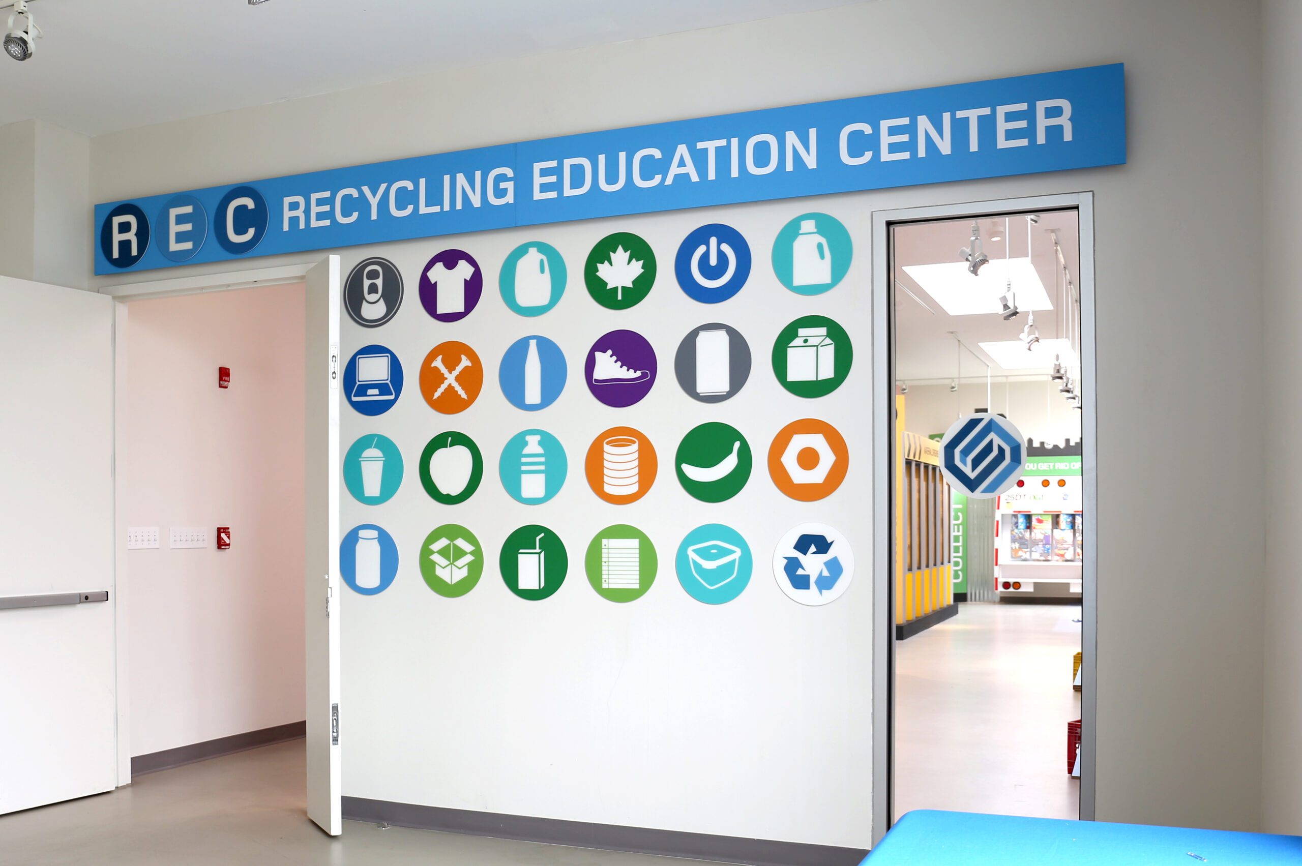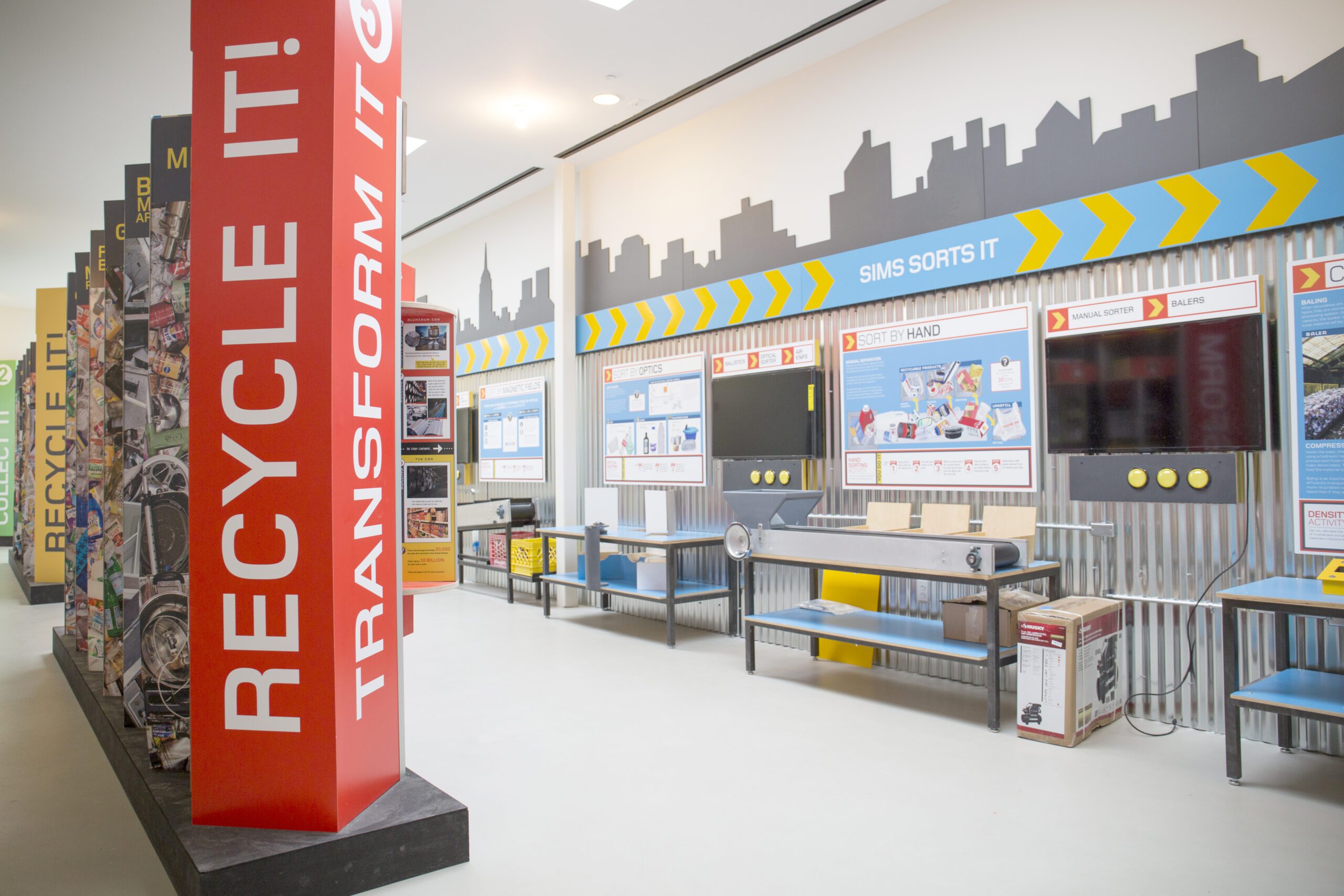 The education center encourages visitors to see recycling in a larger context of the origins of natural resources and energy consumption, systems of collecting and sorting and how the recyclables feed back into the manufacturing of material goods, both saving energy and reducing waste.