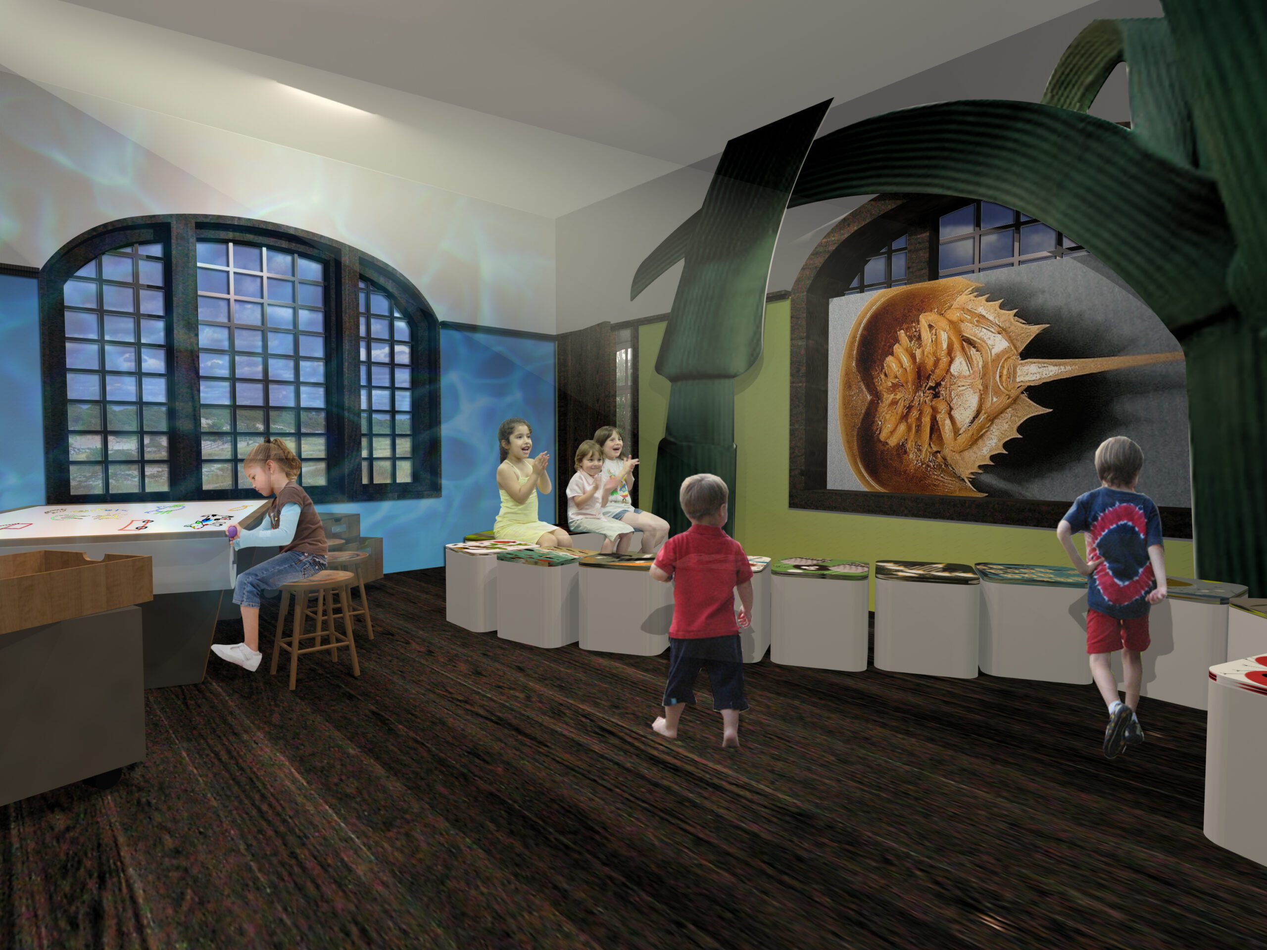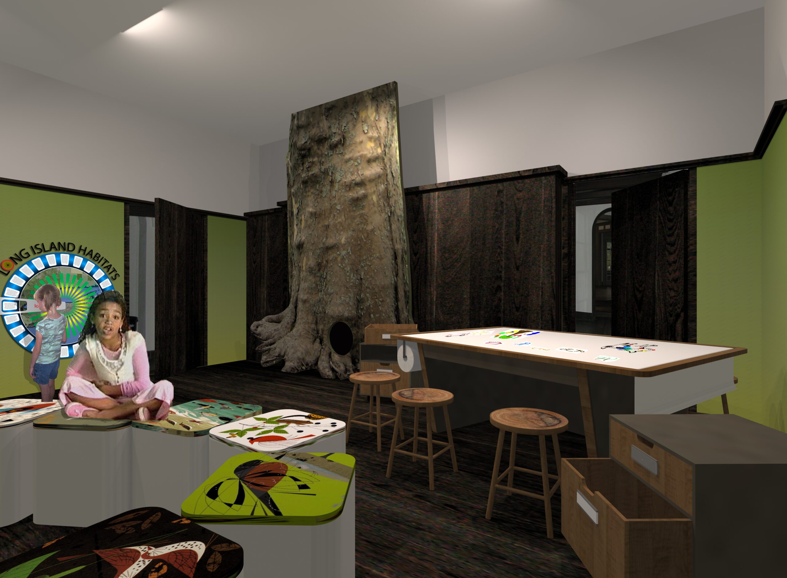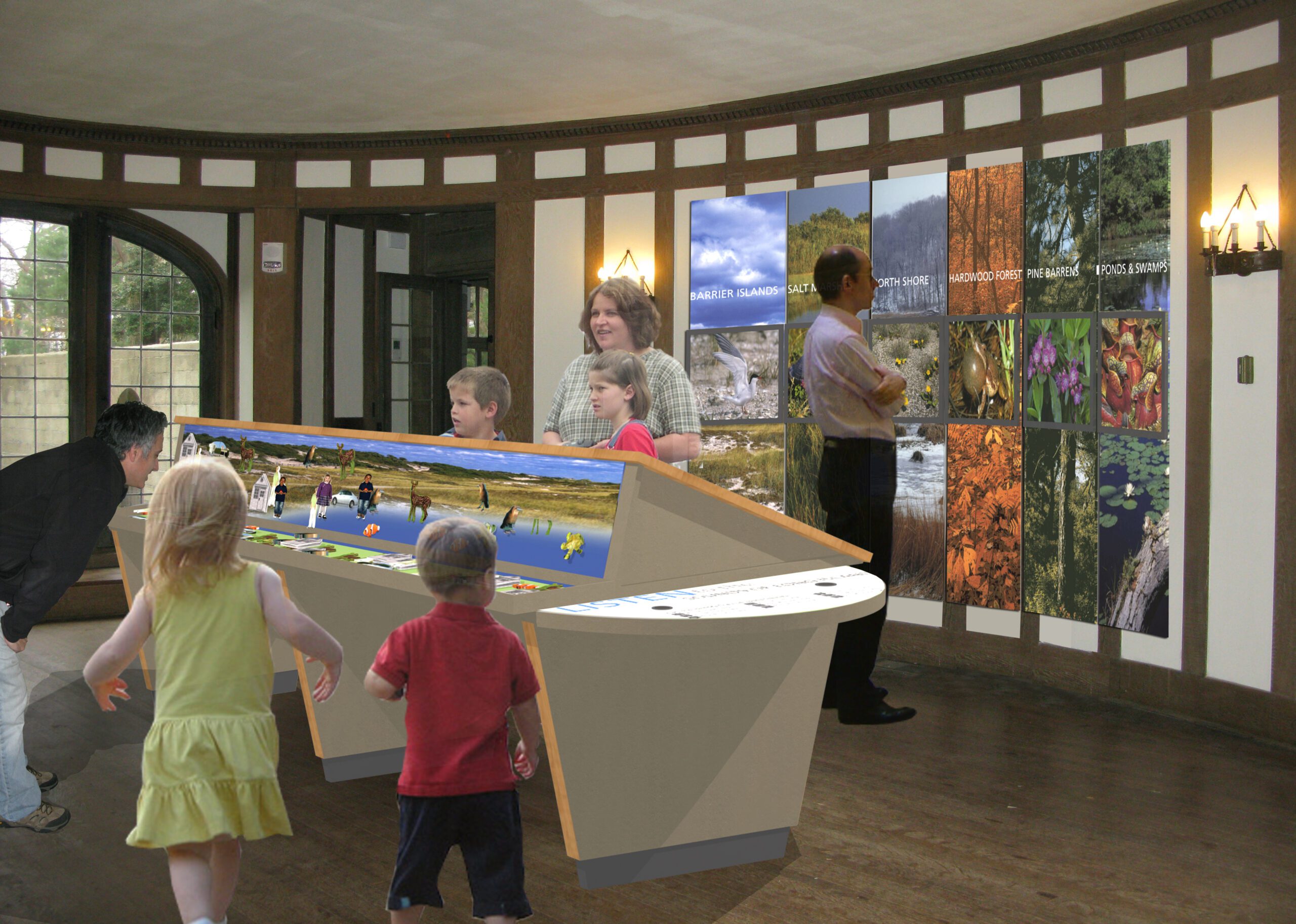 This first stage of development for the center included signage for self-guided outdoor exploration, interior exhibits and a series of outdoor interpretive panels.