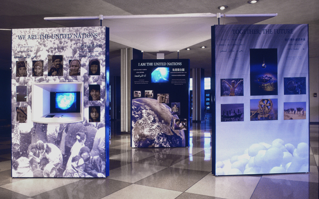 For the 50th Anniversary of the United Nations, Whirlwind designed a modular exhibit depicting the history of the United Nations peacekeeping efforts and international economic developments. This multi-lingual exhibit with interactive programming was replicated 30 times and distributed to participating countries throughout the world as a way to reach the widest audience possible.