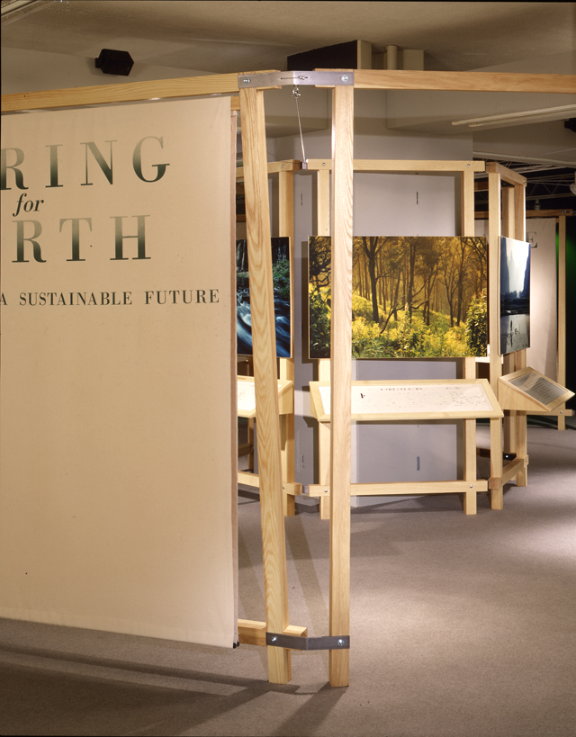 In 1992, the United Nations Environmental Program presented to the General Assembly principles of sustainable development that accompanied the UN Conference on Economic Development. The exhibit, designed and built from all natural materials, was assembled at the UN in New York and traveled to Rio de Janeiro and Toronto for three international conferences.