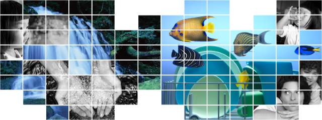 For the premiere of a new brand look for Amway’s home products, two synchronized projections onto a 20’ long x 9’ high textured wall of rippled tiles create the illusion of 104 multiple screens programmed in sequence randomly to transition from one signature image to another. Beautiful, clean, elegant and dramatic describes the presentation.