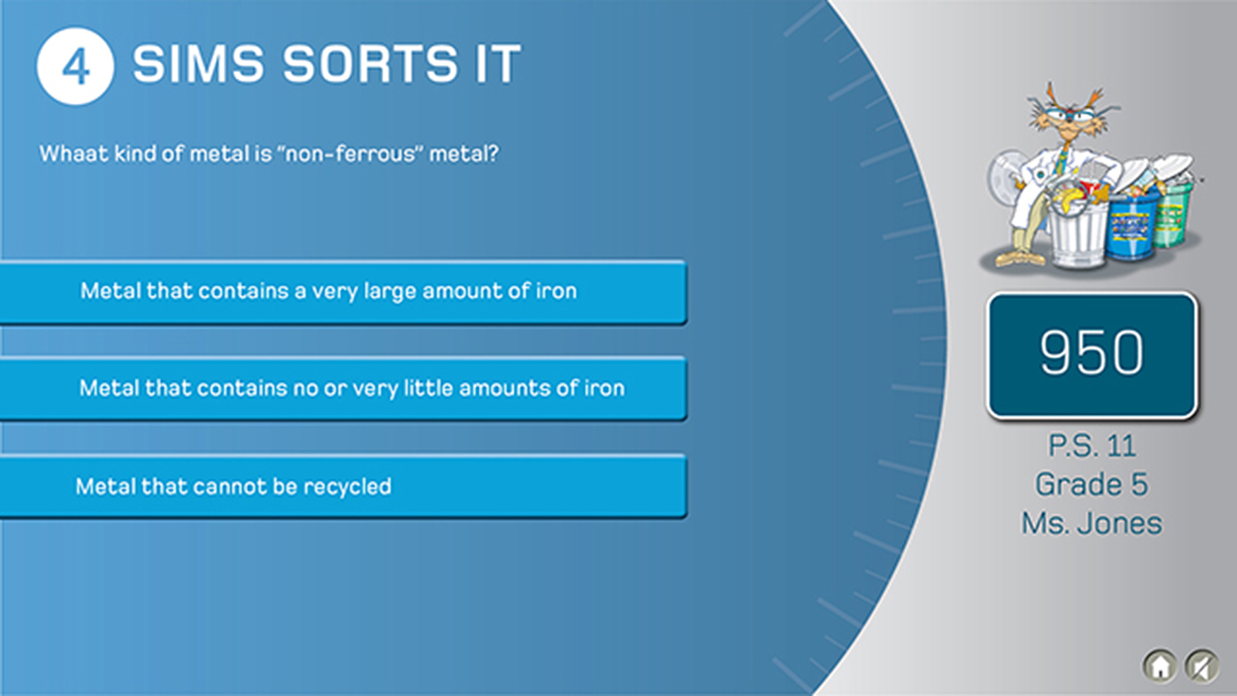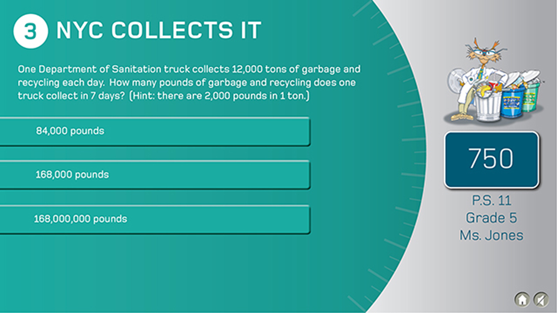 Aiming to promote awareness about the value of recycling, this game is designed for school groups to learn more about the origins of materials and natural resources, how materials are sorted by type and how different products can be recycled. This game is part of a tour and education center at the Sims Material Recovery Facility in Sunset Park, Brooklyn.