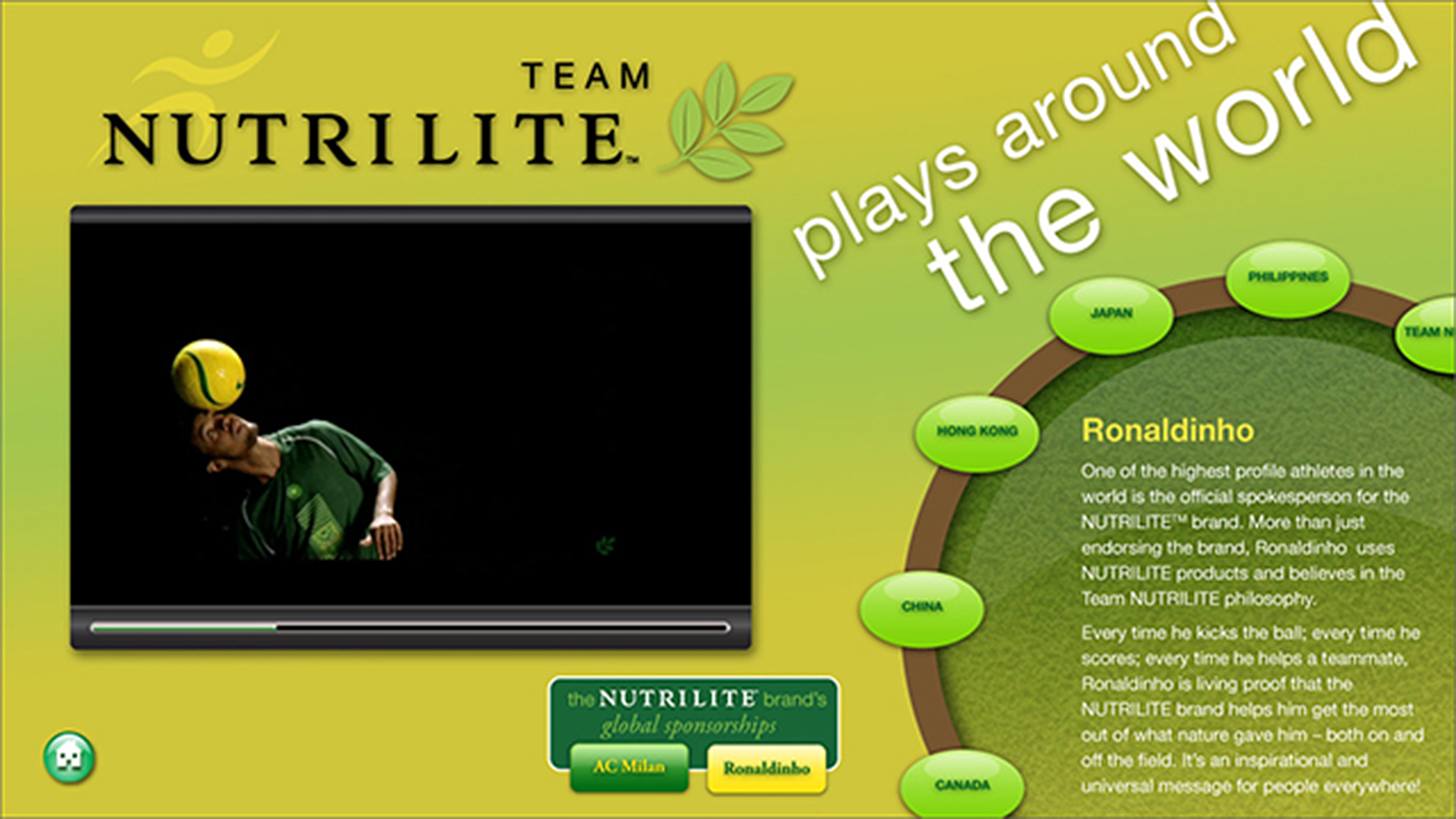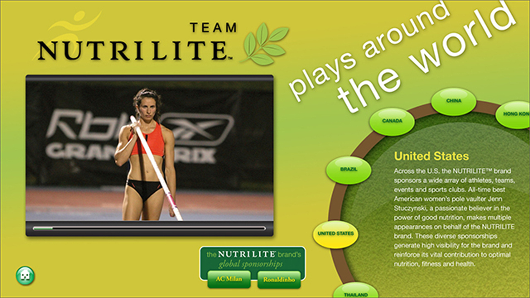 This interactive highlights Nutrilite’s programs around the world, ranging from athletes and events that the company sponsors in North America, South America and Asia.